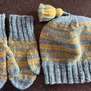 Handspun and handknit hat and mittens